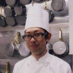 根底にプティポワ・ア・ラ・フランセーズのグリンピース、小タマネギ、ベーコン、レタスの組み合わせがあり、ここに枝豆、ベシャメルを加え豆に見立てたラビオリに仕上げました。もう一つのテーマに「香り」があり、ラビオリに加えたエストラゴン、ソースのミント、黒いクランブルの焼豆、緑のベーコンの燻香を調和のとれる最大限まで主張しました。四角に揃えたクランブルとベーコンは食べた瞬間のサプライズを狙ったものです。 日本の豆使いは多彩でどう調理するか悩みましたが、おからや揚げ豆等、身近な食材を使いフランス料理にする事ができたのではないかと思います。 ラビオリを豆に、その成分を情熱に置き換え溢れるパッションが芽生え、やがて大きく成長していく、そんな想いを込めた一皿です。料理人として、料理に対する思い・夢・目標