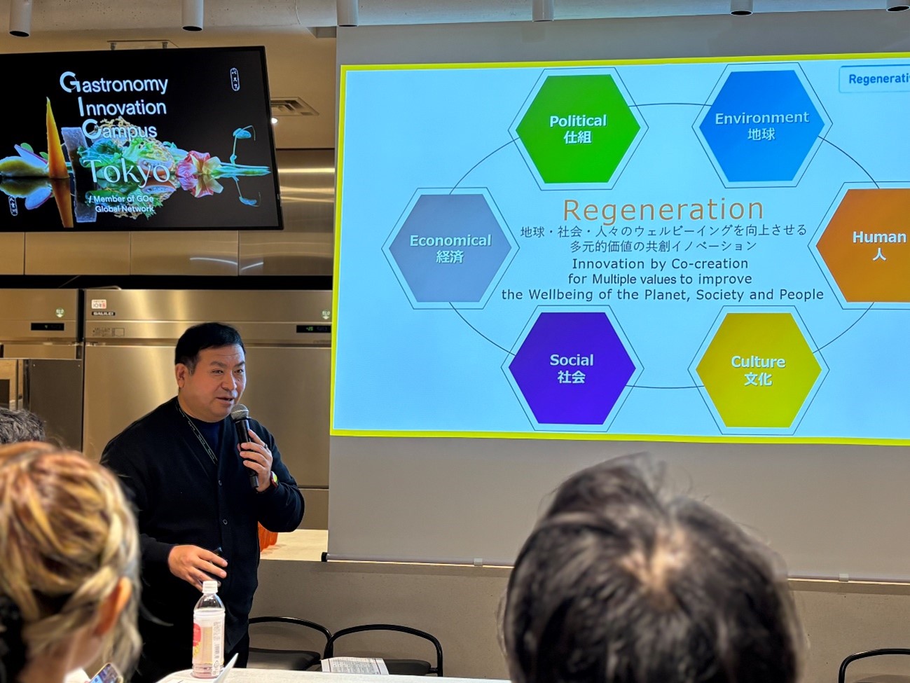 続いて、東京建物株式会社 まちづくり推進部 FOOD & イノベーションシティ推進室 室長の沢田氏より、同社が掲げる「リジェネラティブシティ構想」の概要が紹介され、GIC Tokyoがその構想の中で果たす役割や、Basque Culinary Centerと連携したシェフにおける講義プログラムの価値についてお話しいただきました。