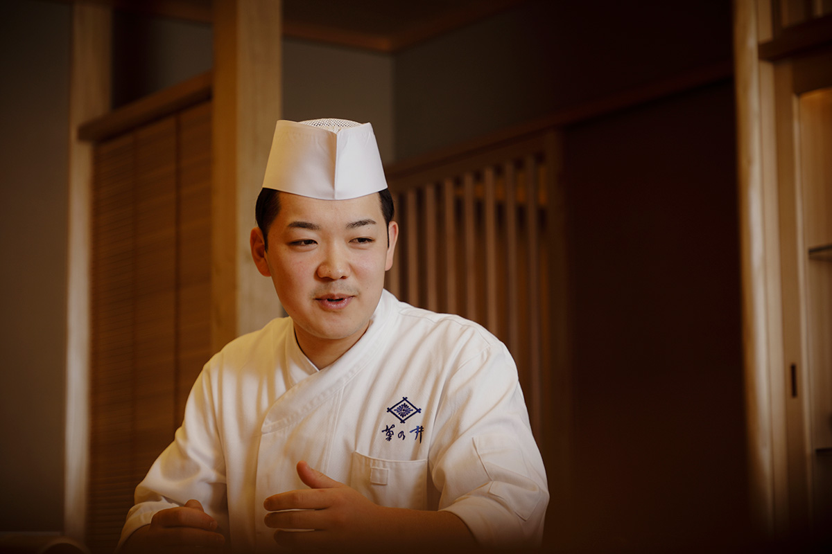 2000年、栃木県生まれ。日本料理の美しさに魅力を感じ、高校卒業後に「菊乃井 本店」(京都)にて約5年間勤務。その後、2024年にオープンした「菊乃井 鮨青 肉雲収」へ。将来は海外でその土地の料理を学び、日本料理店にこだわらずにさまざまなジャンルのレストランで研鑽を積みたいと考えている。