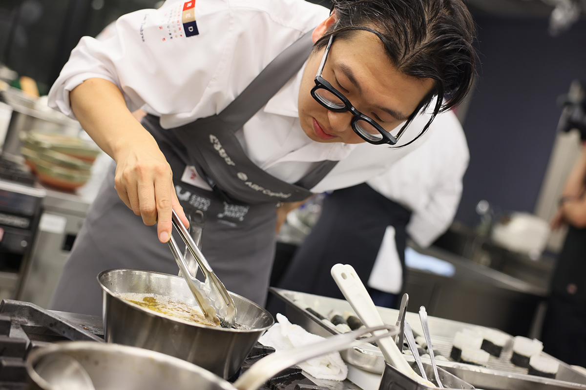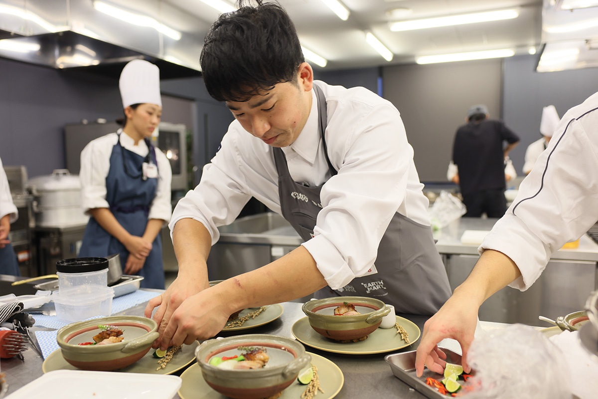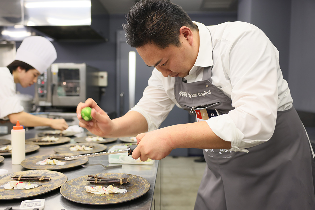 彼らのミッションは、「EARTH FOODS 25」の食材を使用し、一次審査で提案した料理をベースに仕上げたひと皿を審査員団に提供すること。制限時間は、調理時間と質疑応答を合わせて85分である。