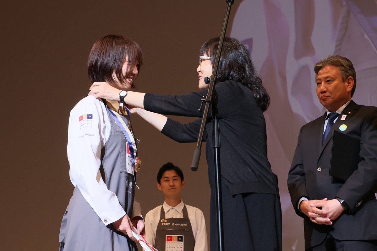 一方、準グランプリに輝いたのは、丸山千里氏。レストランに所属せずフリーランスのフードクリエイターとして活躍する丸山氏らしい視野の広さや課題抽出力を武器に、食材の新たな価値を発信し続けた真摯な姿勢が評価された。