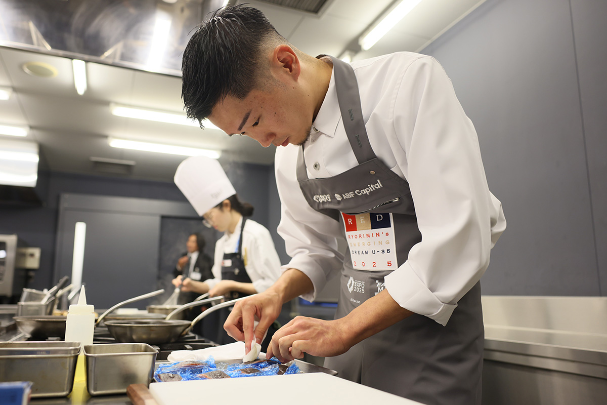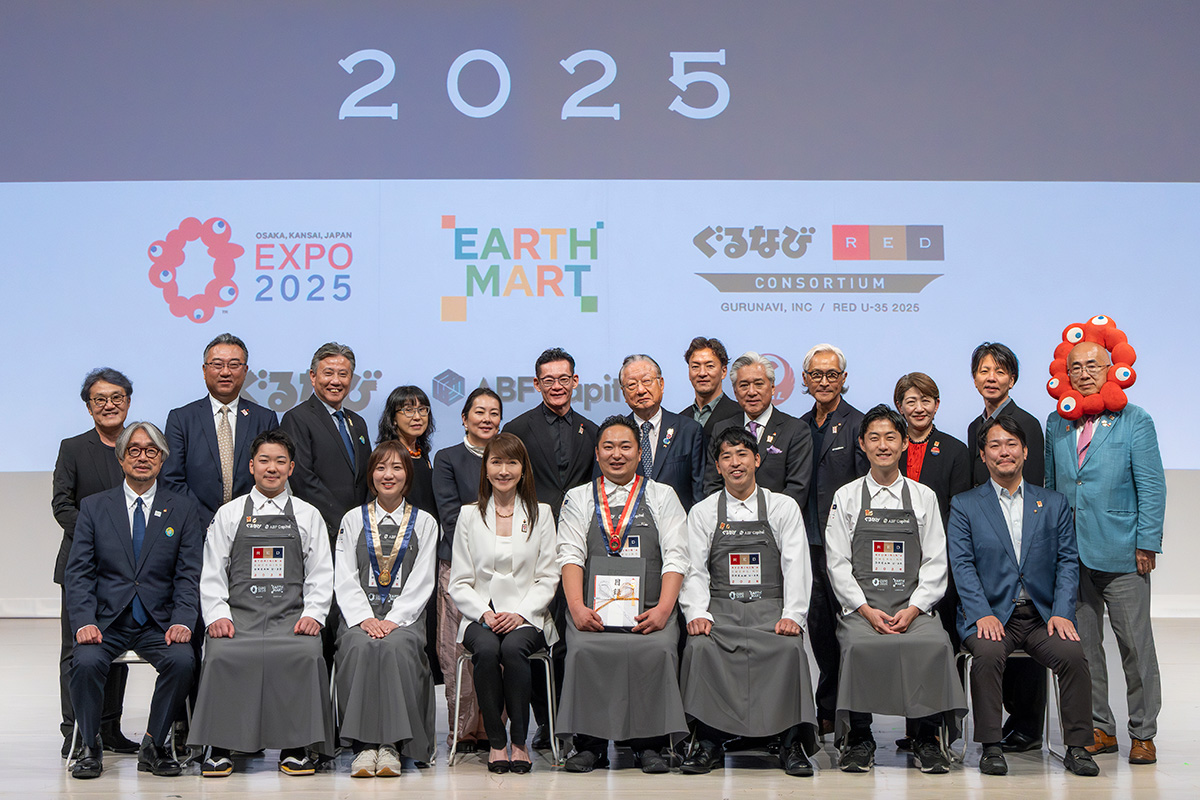 趣向を凝らした審査方法と日本の料理界を代表する錚々たる顔ぶれの審査員団による厳正な審査で、新しい時代を切り拓く“食のクリエイター”を見出してきた「RED U-35」。12回目を迎えた「RED U-35 2025」のファイナルステージが、世界が注目する2025年日本国際博覧会(以下、大阪・関西万博)のEXPOホール「シャインハット」にて開催された。世界に発信するにふさわしい記念すべき大会のテーマは「日本から世界へ〜EARTH FOODS 25」である。