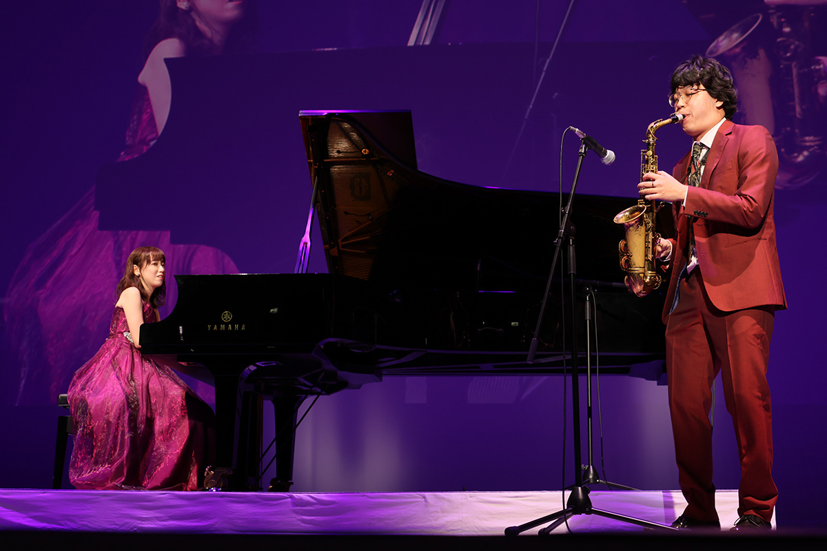同日午後3時。「RED U-35 2025」のフィナーレは、作曲家 千住明氏プロデュースのスペシャルライブによって、華々しく幕を開けた。ジャズピアニストのRINA氏とサックス奏者の中林俊也氏によるジャジーなアレンジで演奏されたのは、千住氏作曲の「RED U-35」テーマ曲“CHALLENGERS”。 希望に満ちた旋律が会場のボルテージをさらに高めていた。
