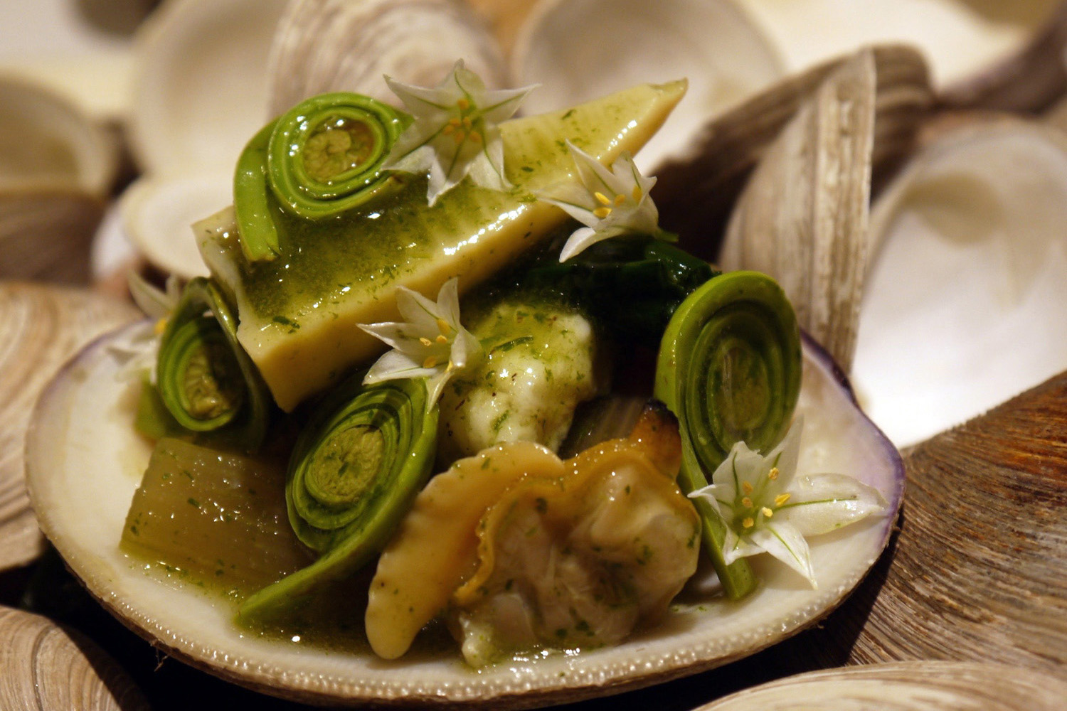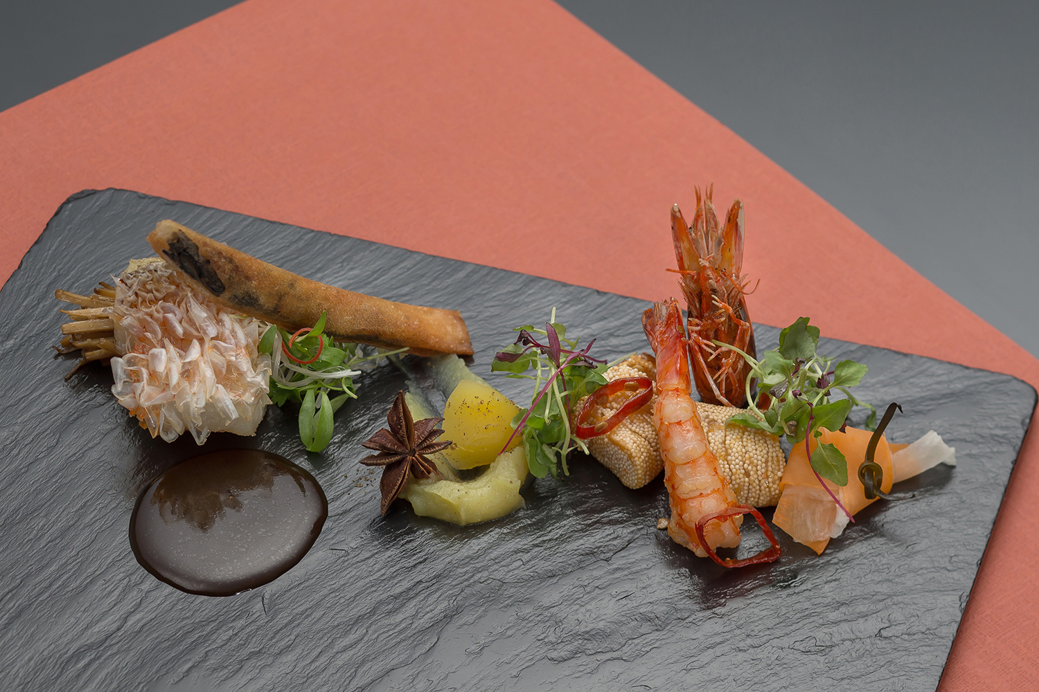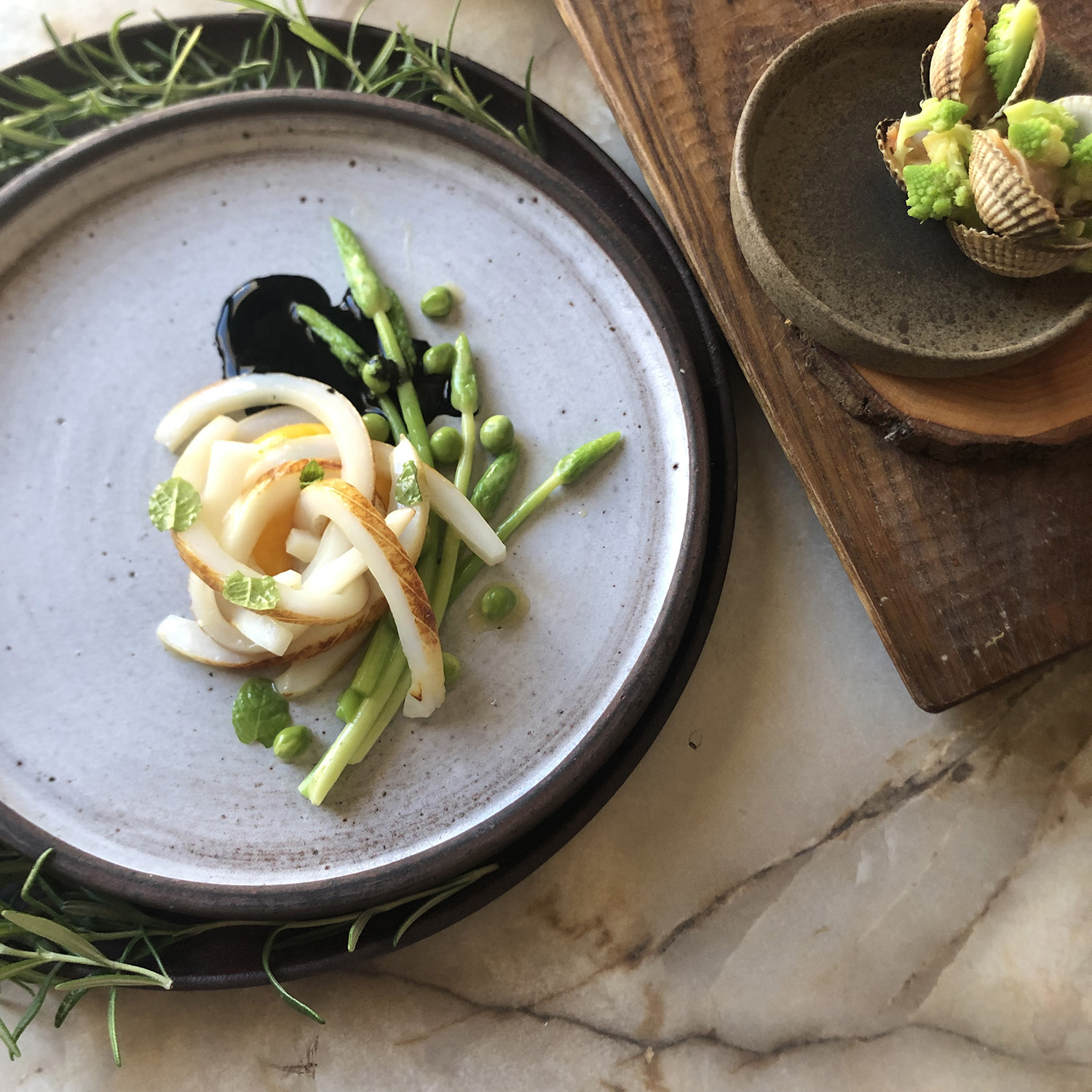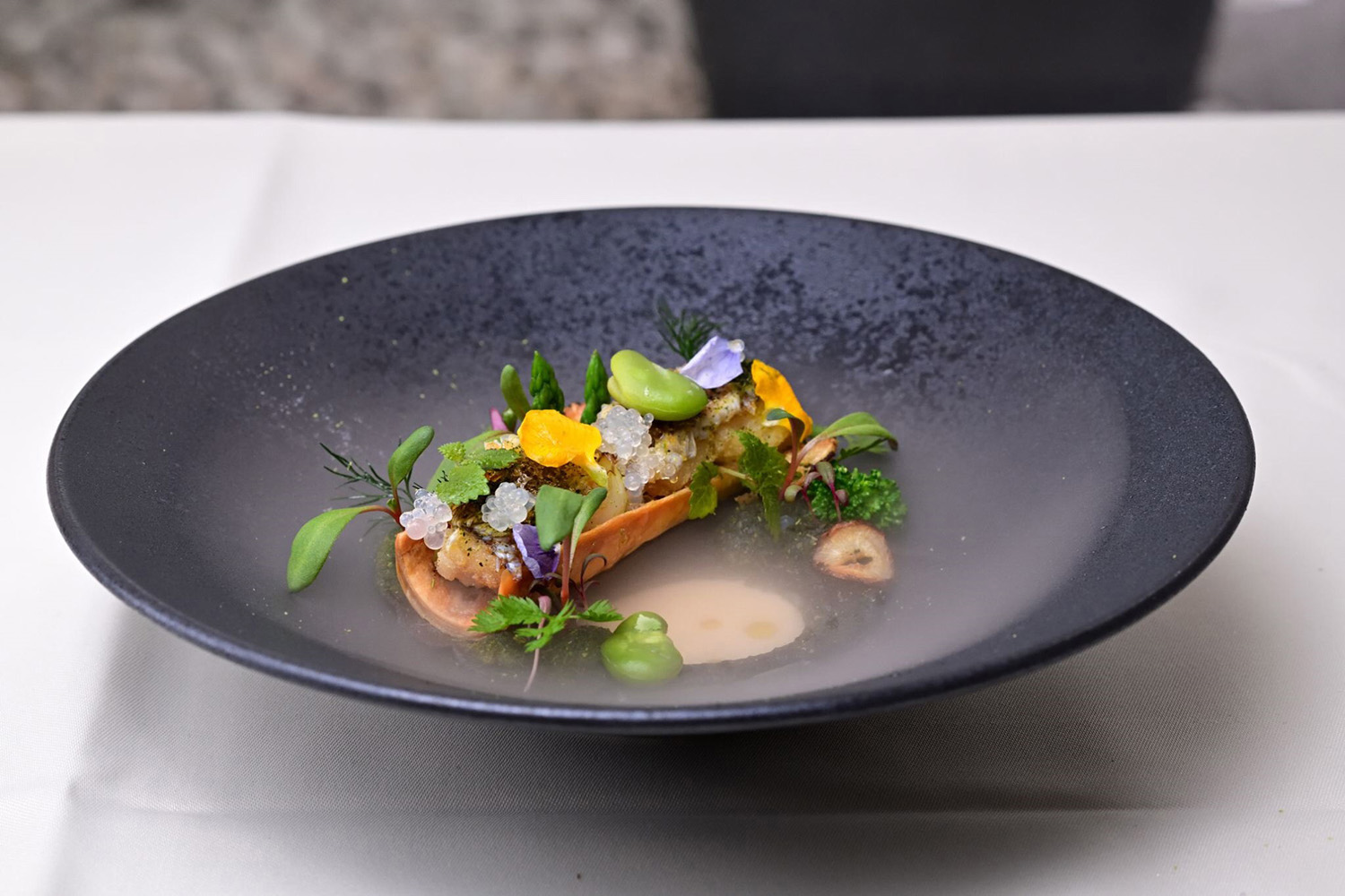 料理名:黒鯛のポワレ 蕗味噌のラッケ 甘エビの濃厚なリゾットと