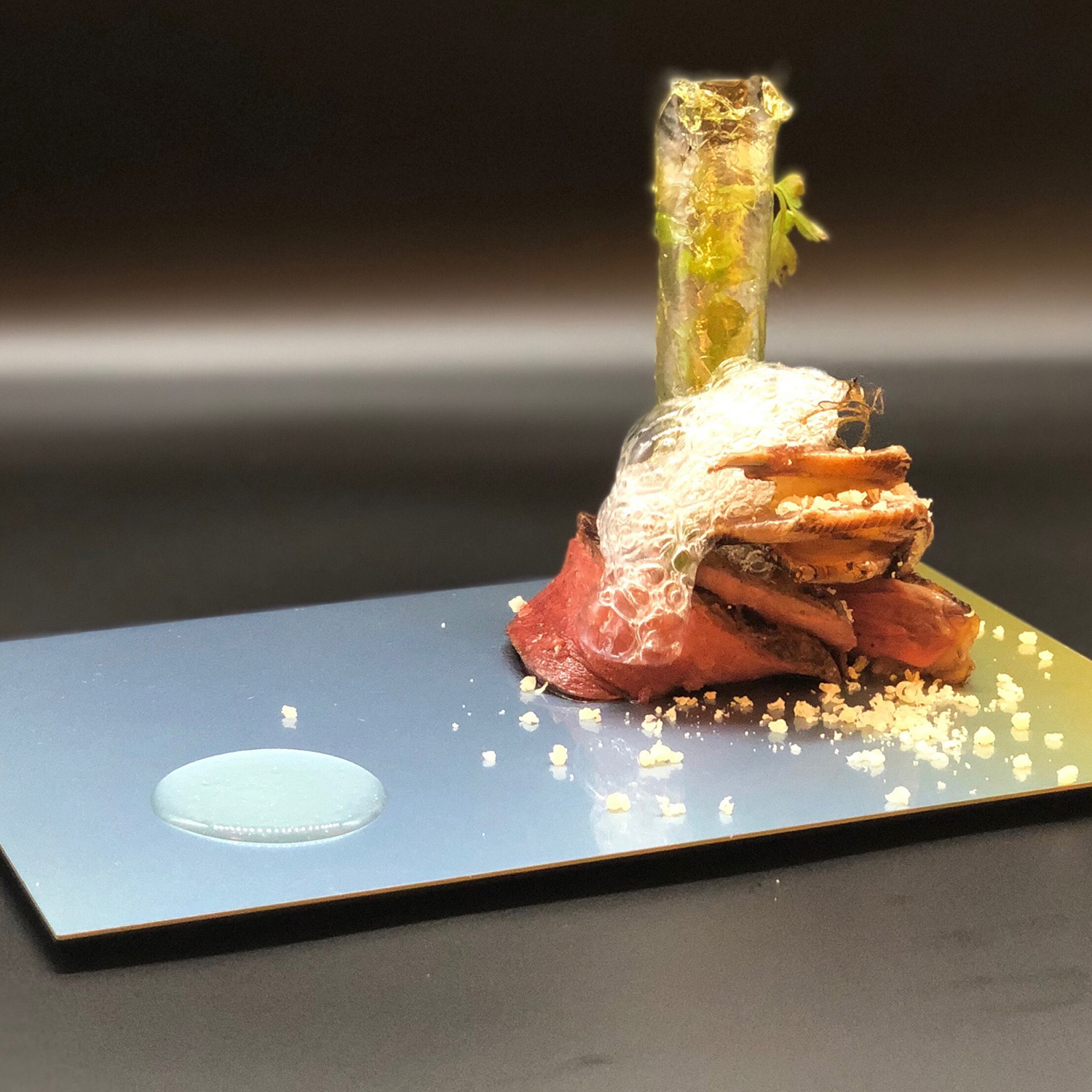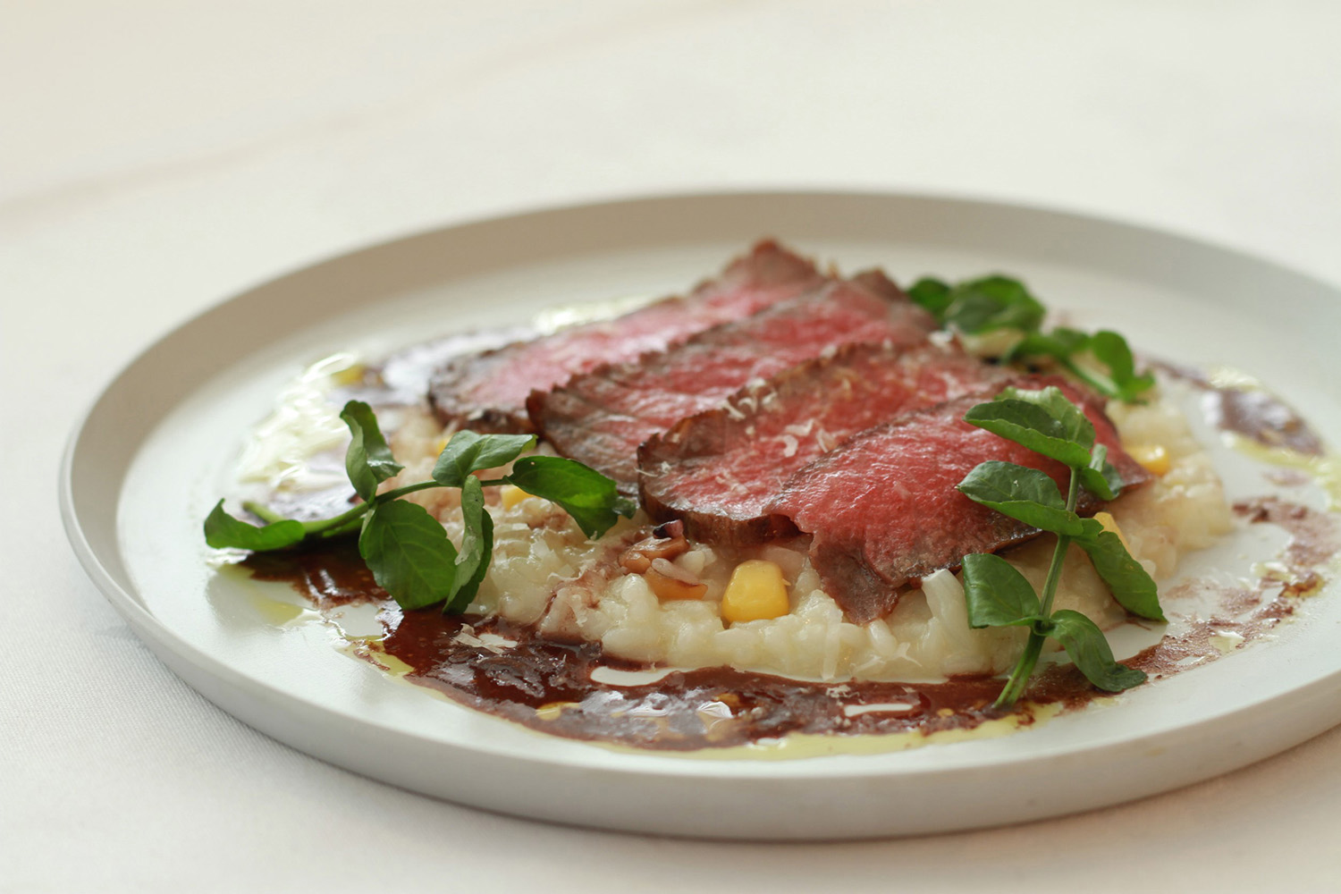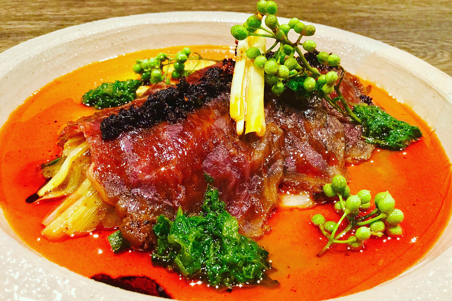 料理名:経産牛の藁焼き 山椒醤油 ~牛が食べた藁の香り~