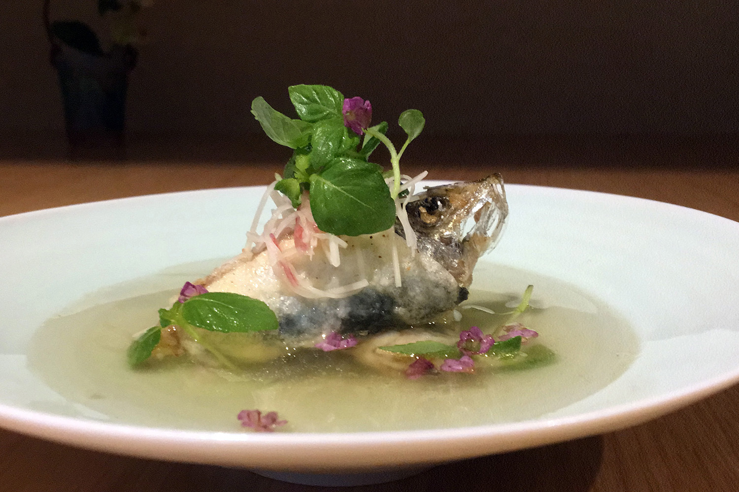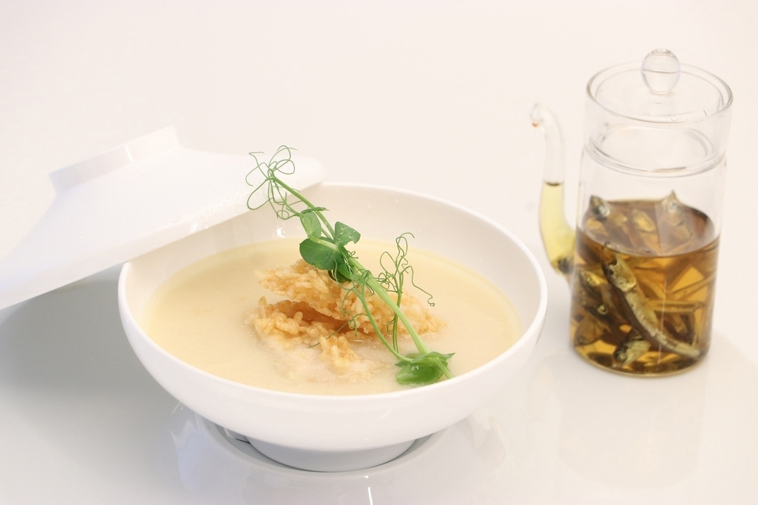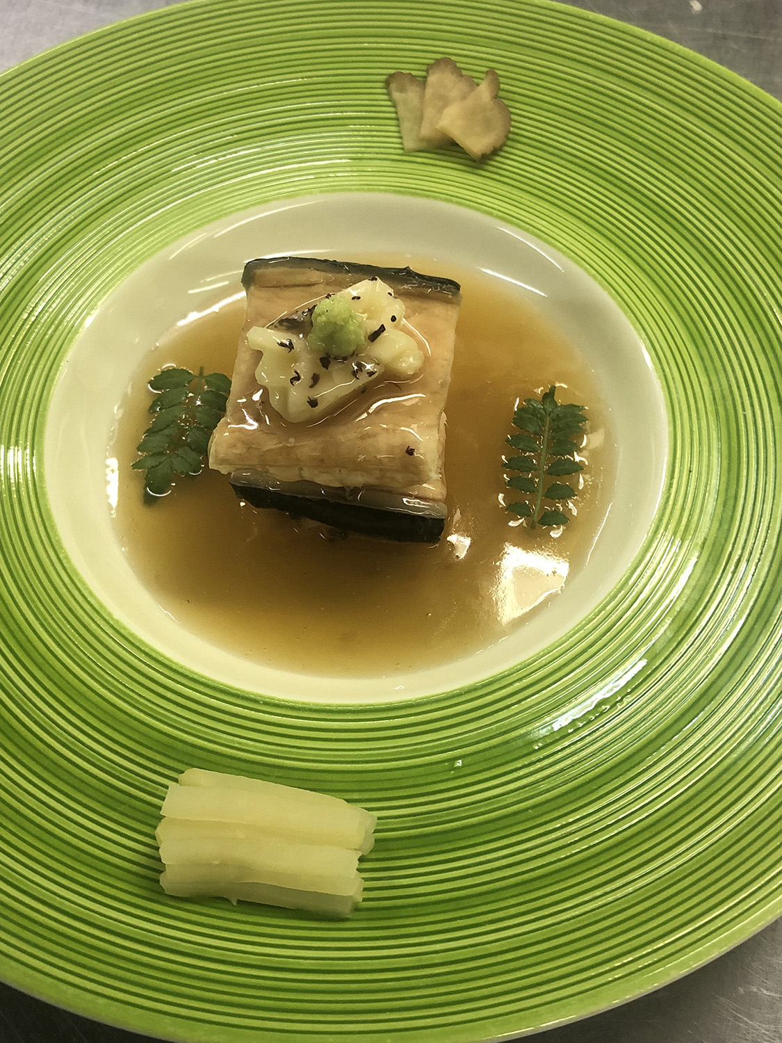料理名:神経〆時知らず中骨の現代風茶漬けとメッセージ